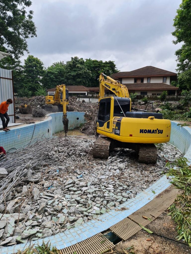 รื้อถอนสระว่ายน้ำและปรับภูมิทัศน์
